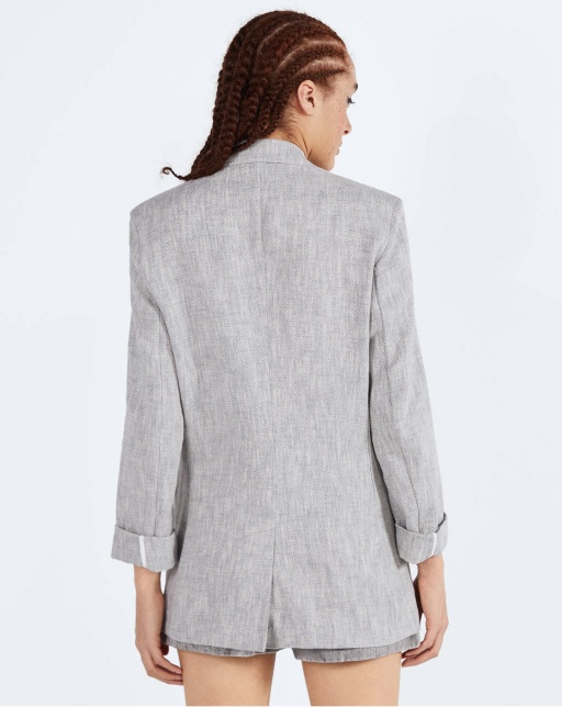 The insulated jacket is made of leather. A light layer of insulation. Details: stand-up collar, zipper, two pockets on the sides.